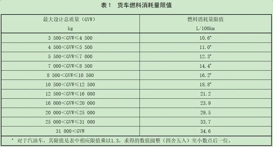 ? ? ? ? 《重型商用車輛燃料消耗量限值》規(guī)定了重型商用車輛燃料消耗量限值,是強制性國家標準。